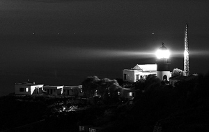 我静下心来,默数着亮光的明暗间隔时间,1、2、3……26,间隔26个数大约是15秒左右,凭经验我猛然省悟,那应该是花鸟山灯塔!估计一下距离,大约在五六海里。我知道我们得救了。