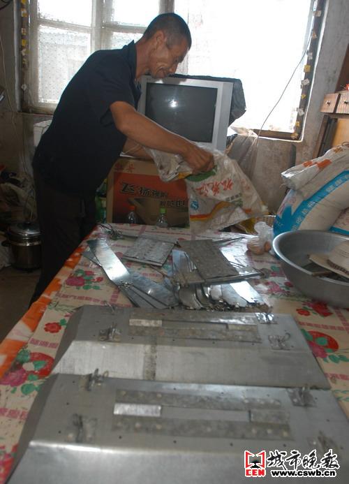 今年年初,王海林攒了4000元钱,他决定,把自己脑海里早就成形的预防海难事故的装置付诸实现。为了早日将自己心中的构想做出来,他买了铁皮、木材等材料,从打磨到定型,全部自己动手。就这样,几个月的时间里,他完成了1000多种零件的制作。说起自己这个装置的原理,王海林表示,自己一天书也没有读过,说不出什么原理,他甚至没有坐过船,惟一一次与船的亲密接触,就是20多年前,在大连的海边,曾经看过一次大船。“我想了40多年,我心里就有这个东西,我知道它该是什么样子的,我今年一定要把它做出来。”面对记者的质疑,王海林信心百倍。