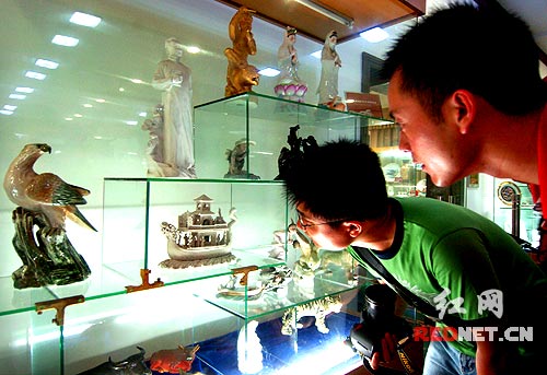(醴陵的精品瓷器正吸引着参观者的目光。利用醴陵瓷器的历史地位,醴陵近年打造出“红官窑”等陶瓷界的响亮品牌。