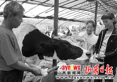 8月11日,忻州市前郝村养牛大户杨福保正和家人一起喂养奶牛。该村积极发展特色经济,已逐步发展成为集生态农业观光旅游、特色种植、养殖、生产加工四位一体的高效农业模式,形成农旅合一的高效观光农业,给养殖户带来了极大收益。