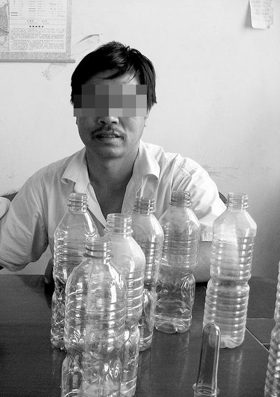 7月31日,刘先生约见记者,称目前市场上很多杂牌矿泉水的瓶子是用回收塑料加工的。刘先生以前从事过这类加工,现在洗手不干了,他的厂子从废品收购站购买废旧塑料,用机器打碎后,再把这些碎料卖给一些生产塑料瓶坯的企业,瓶坯经过专用机器吹瓶成型后即可上市销售。