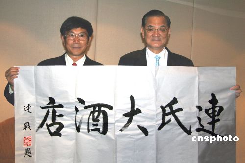 连战为福建"连氏大酒店"题名 并为族谱题字(图)