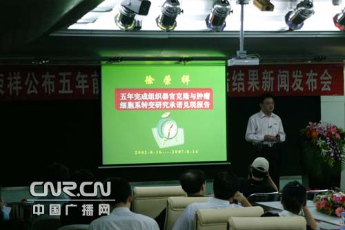 徐荣祥:公布器官克隆与肿瘤细胞系转变研究成果