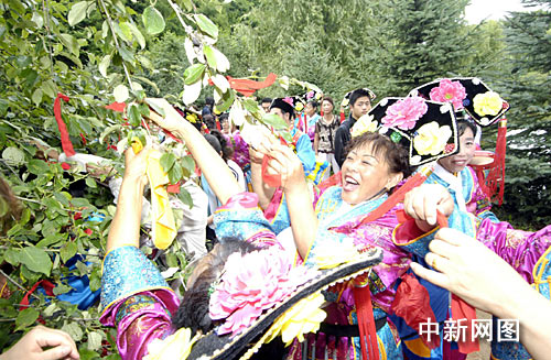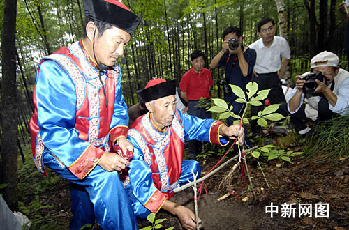 18日,在长白山密林中举办采挖野山参活动“把头”为游客示范采挖野山参。位于长白山下的安图福满生态沟被国家旅游局确定为“国家级农业旅游示范点”,这里成功种植野生山参已经有25年的历史。而在上千年的采挖人参活动中,经过历代“放山人”的锤炼,这里还孕育出丰富多彩的人参文化。
