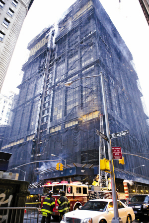 美国纽约世界贸易中心遗址“零地带”对面已遭废弃的德意志银行大楼18日发生大火。在“9·11”事件中痛失多名成员的一支消防队再遭损失,两名消防队员殉职。由于这幢摩天大楼与“零地带”近在咫尺,“9·11”恐怖袭击时混入大量有毒物质和粉尘,因此很多人担心,火灾带来的浓烟可能威胁周边居民。