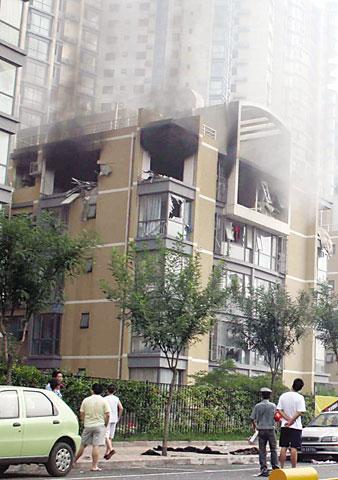 据502室的张姓邻居描述,当时突然听到爆炸声,然后家里所有的窗户玻璃都碎了,邻近几家的防盗门也变了形,一个单元的人赶紧跑下楼。10分钟后消防车、救护车到达现场将两名死者和一名伤者运走。