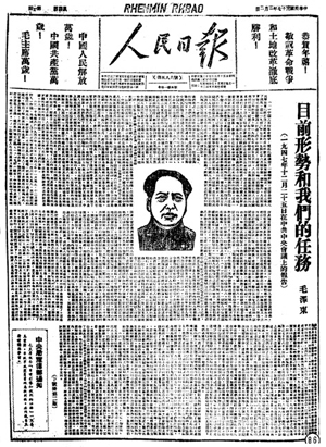 上图:这是1948年1月1日晋冀鲁豫解放区出版的《人民日报》上刊登的《目前形势和我们的任务》(资料照片)。
