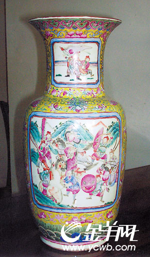 你收藏的“粉彩战将纹花瓶”,年代应为清代同治年间之物,产地为江西景德镇,器物完美的市价达1.2万元。