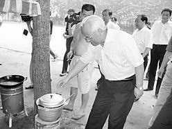 民政部部长李学举在灾区考察受灾群众生活情况。