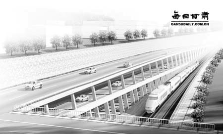 民大地道:该地道东起五泉人行天桥西侧,西至规划安定门铁路立交东侧,线路顺直,规划长度约为1400米。目前采用的西北民族大学地道的路线方案为:充分利用西北民族大学与兰新铁路相夹之下的南山战备公路的地形条件,在做好安全防护和施工期间道路疏通的前提下,在既有南山战备公路下设置民大地道,竣工后恢复南山战备公路,同时解决车流过境、出入城市及西北民族大学进出的地面交通问题。民大地道下行线位于上行线之上,路面高差为6米左右,为上下双层明挖结构;棚洞式双层结构北侧采用镂空形式,通风采光较好且结构新颖独特,地道出口西北侧为规划安定门公路立交;与之相接的伏龙坪隧道上、下行线路间距为40米,路面不等高,进口处下行线高出上行线11.7米,在出口处设为并行等高。
