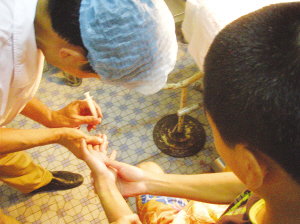小李一直紧攥住左手腕,防止毒素扩散。