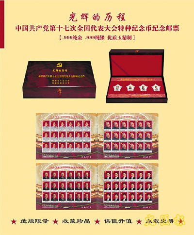 4套小联张纪念邮票是用纯金金箔制作十分精美,这是首次用玉石材料做纪念币,同时也是胡锦涛总书记的单人形象第一次铸在纪念币中,极具收藏价值。