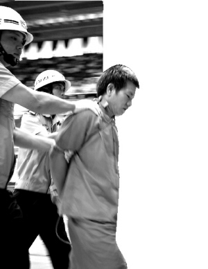 9时50分,随着30多名武警和特警走进会场,穿着“湛一看055”号囚服的彭桂发,及其同伙黄伟等8名被告人在16名警察的押解下走进了宣判会会场。
