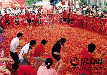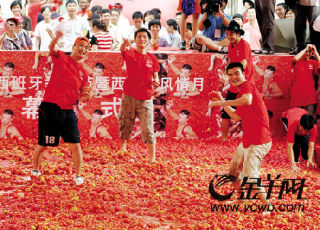 据介绍,每年8月最后一个星期三,在西班牙巴伦西亚地区的布诺小镇都举行一年一度的民间传统节日番茄节——“番茄大战”。“参战”和“观战”的人数达数万人之多。此次华南MALL西班牙番茄节的定位是一次中国民间的狂欢节,在保留西班牙番茄节“原汁原味”的同时,还根据我国的风俗习惯,作了相应的调整。