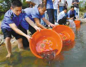 但由于经济利益驱使,楠溪江盗鱼事件屡禁不止,炸鱼、毒鱼、电鱼等行为屡有发生,对渔业资源破坏极大(本报28日一版曾报道)。这次放流河鳗苗后,如何保护呢?永嘉农业局有关人员介绍,他们采取了多种措施:推行溪流渔业承包方式,调动乡、村和承包户的护渔积极性;设立渔业资源增殖保护区,实施禁渔区、禁渔期和保护区制度,制定最低可捕标准、加强保护重点品种;强化渔政管理措施,增加江面巡查频率等。该负责人还表示,相信通过增殖和保护相结合的办法,一定能使楠溪江渔业资源尽快得到恢复。