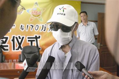 昨天下午3:30,姗姗来迟的领奖人终于出现在大家的视线里。头戴长帽檐的帽子、宽大的墨镜、大大的白色口罩,这位先生“犹抱琵琶半遮面”的出现,看上去该人身高约在1.70米左右,身材较瘦小。为避免“曝光”,他还罩了一件质地轻薄的浅灰色过膝风衣,只露出了一截穿深蓝色西裤的裤腿以及黑色皮鞋。从进门,到从体彩管理中心主任手中接过象征4170万元的奖牌,再到一分钟答记者问,领奖人亮相前后不过两分钟的时间。据这位中奖人常去的中原路大学路附近彩票网点王老板说,他的年龄在30岁左右,是个老彩民。另外,从一口浓重的南方口音上判断,中奖人似乎不太像河南人。