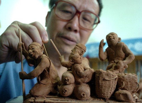 古城泥塑 光明网-光明日报 2007.08.3108:03 关注 这是岳云生创作的泥塑作品《羊皮筏子》。兰州民间艺人岳云生用写实手法,将古城兰州的市井生活制作成独具魅力的泥塑作品,惟妙惟肖,引人入胜。新华社记者张锰摄