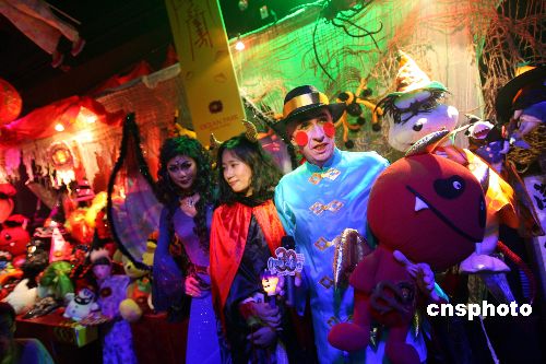 8月29日,香港海洋公园主席盛智文粉墨登场向传媒介绍,9月28日起推出的“万圣节”狂欢节目中加入中国神话元素,7间魔鬼屋和超过250个哗鬼已准备就绪,迎接游客共同投入惊吓之中,尽兴而归。中新社发 洪少葵 摄