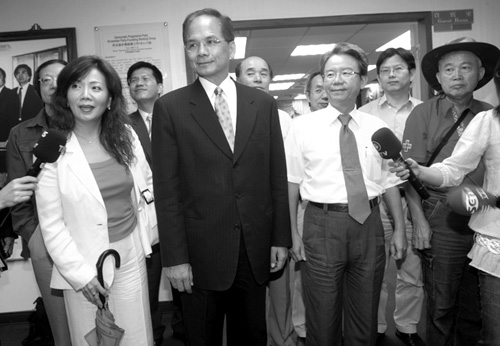 4月,民进党主席游锡堃(中)一帮人炮制出“正常国家决议文”草案