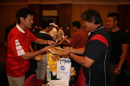 虽然和其他高校队伍已经是赛艇界里的老朋友了,但是首次参与本次赛事的辅仁大学还是格外“受宠”。媒体纷纷上前对辅仁大学赛艇队教练谢茂松进行采访,而这些老朋友则争着对这个本次赛事的“新面孔”递上名片和礼物,记者的采访不得不被打断。辅仁大学教练谢茂松倒有点应接不暇,手忙脚乱了。
