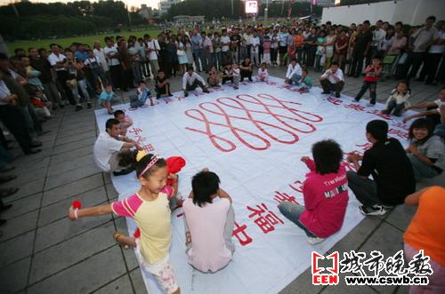 本报讯“丢丢丢手绢,轻轻地放在小朋友的后面……”昨日傍晚,在长春市文化广场上,近千名市民围成了一个大圈,一起玩起了丢手绢。原来这是一群网友自发组织到一起,建立了“手心里的宝 幸福中国论坛”。他们共同的心愿就是宣传幸福奥运、提倡环保。论坛的成员、活动的发起者“地球脚印”告诉记者,他们的“丢手绢”活动完全是公益性质的。“我们会按照奥运火炬传递的路线到不同的城市去举行这个‘丢手绢迎奥运’的活动。我们要让更多的人感受到奥运就在我们身边,环保现在就要开始。”