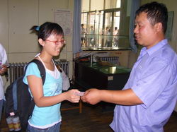 金先生把学生证和车票亲手还给张媛媛时,时间是9点40分左右,没有耽误她上火车。金先生累得直喘粗气。张媛媛和母亲王女士不住地说“谢谢”,金先生笑着说:“不用谢,只要不耽搁孩子上学就好。”王女士十分诚恳地要拿钱感谢一下金先生,可金先生说什么也不肯接受,最后在王女士的一再坚持下,金先生只接受了20元车费钱。 0901A111