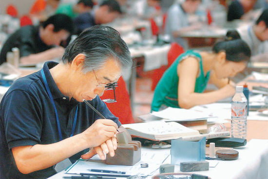 考篆刻 入名社 浙江日报 《浙江日报》官方账号 2007.09.0206:55 关注 昨天,西泠印社举办的“百年西泠·中国印”大型篆刻海选活动总选拔赛在杭州举行。从海内外分赛区脱颖而出的180名优秀篆刻选手参赛,经过现场创作测试和文化素质综合测试,最后胜出的15人将被西泠印社吸收为正式社员。 本报记者 叶寒青 刘慧 摄
