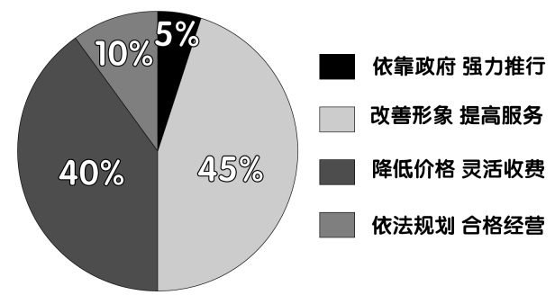 咪表公司在温州发展关键要改善什么呢?45%的人表示要“改善形象,提高服务”,40%的人表示要“降低价格,灵活收费”。市民朱先生说,咪表泊位要想真正让城市更加有序,就应从各个方面进行配套,重服务、轻收费,最终才能达到规范停车的目的。