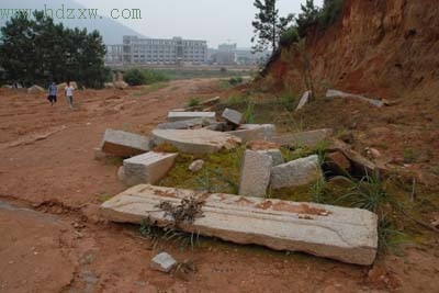 本报讯 闽侯上街闽江学院北门一座20米高的土山上,由于建设需要,土被挖去了一半,一些条石露了出来,被丢弃在一边。闽江学院的3名大学生跑步跑到这里,发现了这些条石,并从条石中看出了些许端倪。