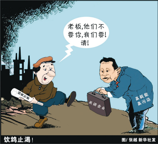 饮鸩止渴! 沈阳网-沈阳日报 2007.09.0403:24 关注 太湖暴发蓝藻后,当地政府下决心关闭一批高消耗、高污染企业的消息,却引得一些省市的招商团纷至沓来,希望将这些企业搬过去。这种把太湖发生导致数百万人饮水困难的危害丢到脑后、争抢污染的行径,真让人担忧。 图/张越 新华社发