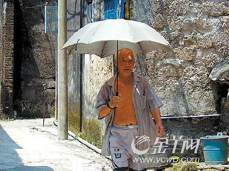 图:潘得勤仍习惯手持送批行头———一把长柄雨伞。