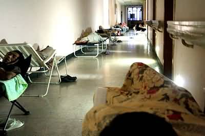 一位医院的工作人员粗略地算了算,医院大约有1200张病床,每张病床至少一位家属陪伴,这样医院里至少就有1200名陪护家属,他们没有地方去,只能挤在医院楼梯的拐角处、走廊上。