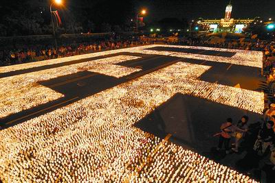 倒扁红潮昨又“汹涌”30万支蜡烛排出“屁”字 红衫军喊出新口号:阿扁放屁