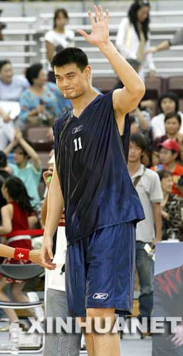 9月9日,中国篮球明星姚明(左)在比赛中。新华社发