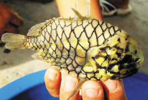 记者随后联系了中国海洋大学海洋生命科学学院的艾庆峰教授,据艾教授介绍,这种鱼叫松球鱼,暖水性底层鱼类,经济价值不大,但是性情温和容易饲养,可以作为观赏鱼类。记者 王建亮