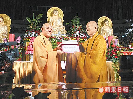 寒山寺赠钟给佛光山作为结为兄弟寺纪念,佛光山为此举行盛大法会。