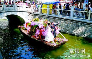花船迎亲(图) 北京日报 《北京日报》官方账号 2007.09.1107:16 关注 前天,一对新人在什刹海举行了一场特殊的水上婚礼。游船改装的美丽花船从后海西岸接上新娘缓缓驶过银锭桥。 江峻摄RJ136
