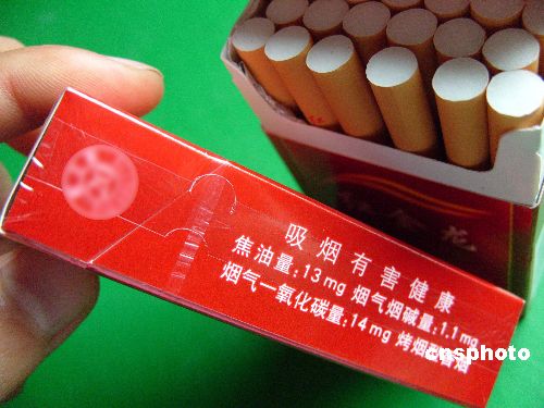 9月11日,负责中国控烟宣传教育工作的卫生部社区卫生司健康教育处处长李新华称,在香烟包装上印刷“腐烂的肺部、骷髅的头像、漆黑的牙齿”等警示图标是《烟草控制框架公约》的规定。《烟草控制框架公约》是世界卫生组织主持达成的第一个具法律效力的国际公共卫生公约,经全国人大批准,2006年1月《公约》在中国正式生效,公约生效3年后,所有卷烟制品包装要印上不低于面积30%、并且可轮换的健康警示语。因此,按照规定在2009年1月所有卷烟制品包装要印上健康警示语。图为某品牌香烟包装盒上的警示语。中新社发 刘君凤 摄