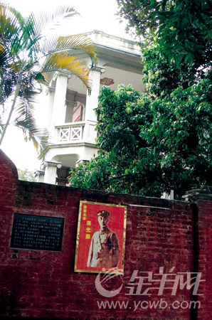 前天下午2时,记者在主干道上下了车,却没有发现蒋光鼐故居红荔山房的指向标志,问了三个人,才从一个小巷子内发现一块小牌子,上面写着蒋光鼐故居欢迎您,进入约200米,在几棵大树掩映下,才看到故居。