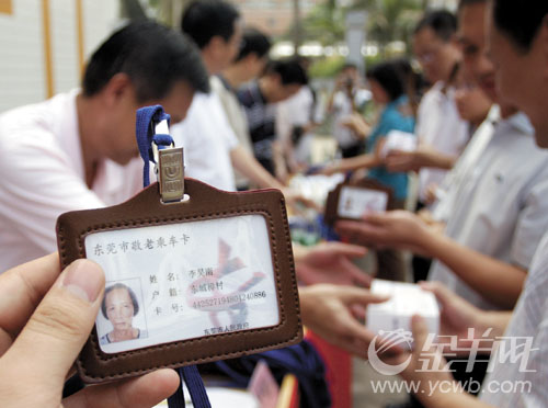 昨日,记者在东莞樟村社区看到,很多老人一早便来到社区广场,等候敬老乘车卡的发放。工作人员将卡发到樟村社区的200多名老人手中,他们都迫不及待地想试试刷卡的效果。