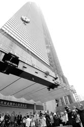 上海环球金融中心最后一根钢梁起吊 东方网-文汇报 2007.09.1511:00 关注 昨天上午,参加上海环球金融中心封顶典礼的贵宾将象征结构封顶的20颗镀金螺丝拧在封顶钢梁上,并签名留念。随后,共同推动钢梁吊装操纵杆,起重机将钢梁缓缓起吊至492米高处就位,10点10分,工程“101”层封顶成功。 图为上海环球金融中心最后一根钢梁起吊。本报记者傅国林张艳摄影报道傅国林;张艳