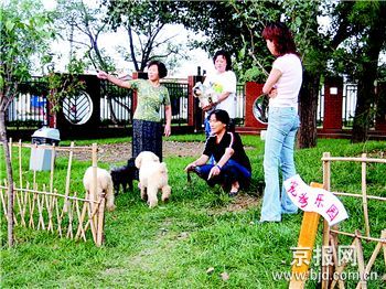 该物业公司总经理郭长友对记者说,这片宠物乐园面积约有百余平方米,四周由竹片捆绑而成的围栏围起。中午时分,两只活泼的小狗被主人牵着来到宠物乐园。它们活跃地在树边跳来跳去,狗主人都快拉不住了。“它们喜欢来这儿,里面小狗多,大家一起玩它们就特开心。”据郭长友介绍,过几天他们还将在小区举办的中秋联欢会上请大伙儿带上狗儿表演自家的“绝活”。“看到生活在自己身边的狗狗这么聪明可爱,不养犬的人也会爱上它们,矛盾自然就能被消减至最低了。”