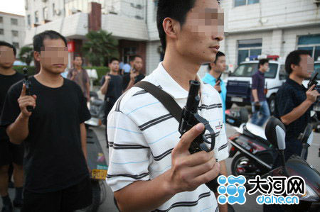 焦许洲称,民警每人身上携带一把公安部配发的可以发射橡胶弹和杀伤弹两种子弹的警用转轮手枪,在进行便衣巡逻时,如遇到嫌疑人拒捕、逃跑时,可以发射橡胶弹,既能使嫌疑人暂时失去逃跑、反抗能力,又避免了误伤无辜群众,在遇到重大案情,人民群众的人身安全受到严重威胁时,特警队员将果断发射杀伤性子弹,当场击伤、击毙犯罪分子。