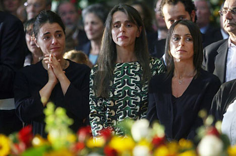 帕瓦罗蒂的三个女儿在帕瓦罗蒂的葬礼上。(图片来源:金羊网/羊城晚报)