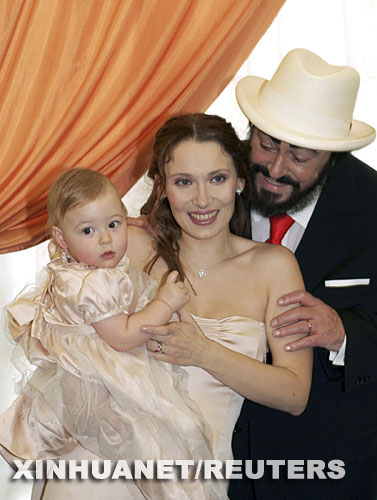 这张2003年12月13日在意大利摩德纳拍摄的资料照片显示的是帕瓦罗蒂与妻子曼托瓦尼和他们11个月大的女儿。 新华社/路透
