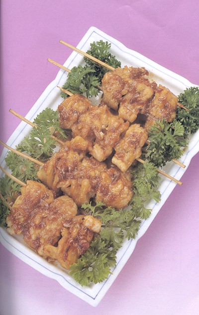 做 法: 1、白鳝(当刂)后起骨,用热水略拖,用刀刮净黏液,抹干,将里面的白肉部分用刀切细纹(但不可切断),再切成三厘米长段,用干葱茸、蒜茸及腌料腌约三分钟,用竹签穿成鱼串。2、用平底锅烧热三汤匙油,将串烧鳝放入,两面煎至金黄色,肉色变白。3、拌匀调味料,扫上鳝块面,并将剩余汁料淋上鱼面,再煎二分钟,即可上碟,芫荽伴碟。