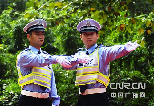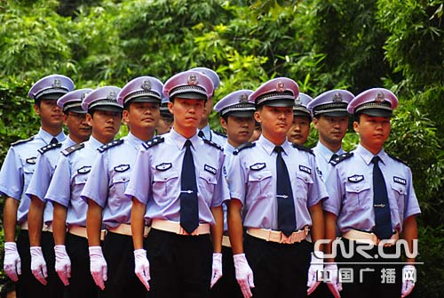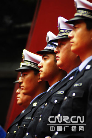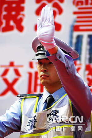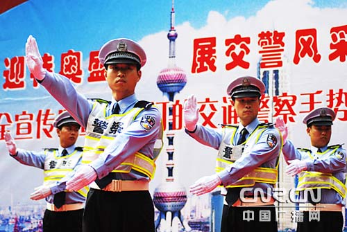 上海交通警察展示新指挥动作(摄影 肖志涛).