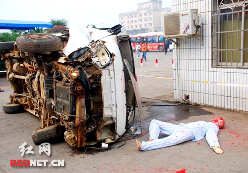 交通事故现场被还原 观众感叹“车祸猛如虎”(图)