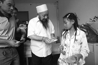 昨天上午9时30分,德高望重的中国伊斯兰教协会副会长、全国人大代表、河南省伊斯兰教协会会长哈吉·教长·优素福·刘宝琦来到郑州大学神经泌尿外科研究中心病房二楼,看望即将手术的汉族姑娘小阿祖和她的维吾尔族父母吐尔逊江、萨拉买提。