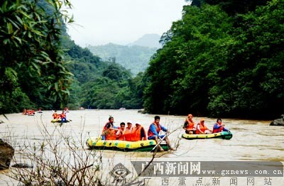 广西新闻网那坡9月29日讯(记者覃铮)9月28日中午,地处中越边境的百南河上不时传来一阵阵欢声笑语。广西那坡老虎跳跨国大峡谷生态旅游漂流的开漂活动在这里隆重举行。这是那坡县继黑衣壮民族风情游之后又倾力打造出的一个旅游精品项目。